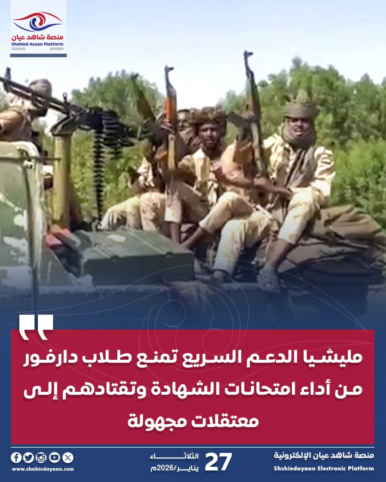 مليشيا الدعم السريع تمنع طلاب دارفور من أداء امتحانات الشهادة وتقتادهم إلى معتقلات مجهولة متابعات | شاهد عيان شهدت ولايات…