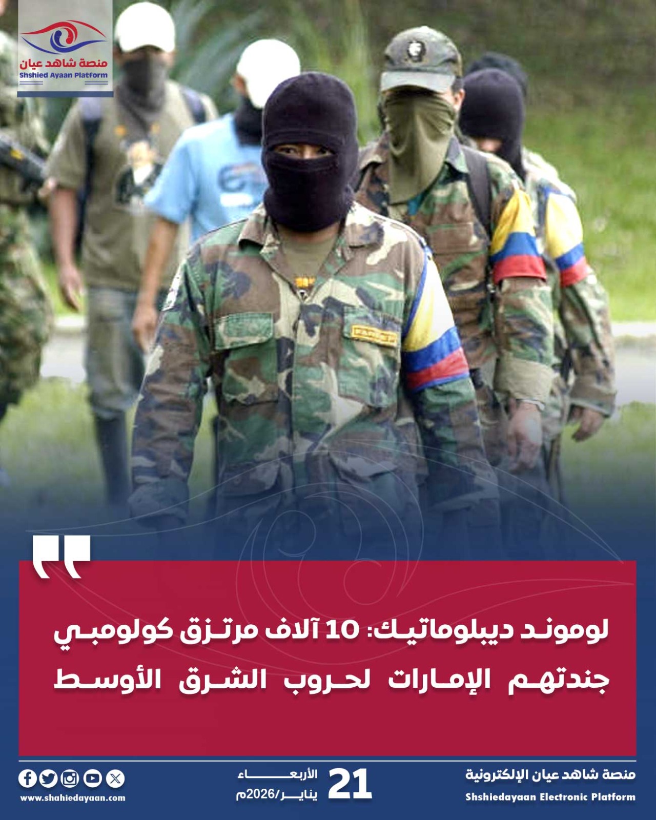 تقرير لـ “لوموند ديبلوماتيك” يكشف تقرير أن نحو 10 آلاف مرتزق كولومبي شاركوا في حروب الشرق الأوسط خلال العقد الماضي،…