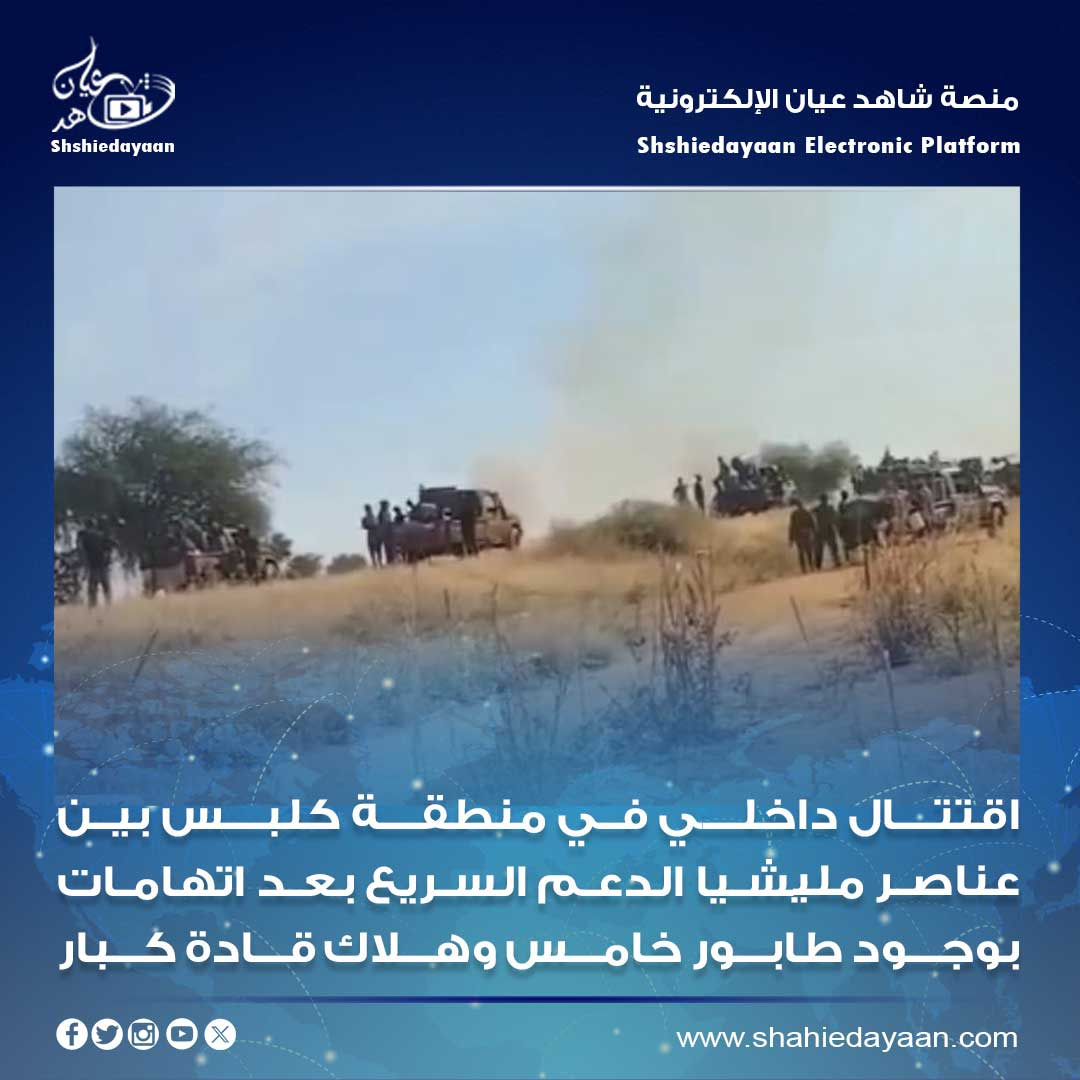 اشتباكات عنيفة في كلبس بين عناصر مليشيا الدعم السريع بسبب اتهامات في اوساطهم بوجود طابور خامس بينهم بعد استهداف مسيرات…