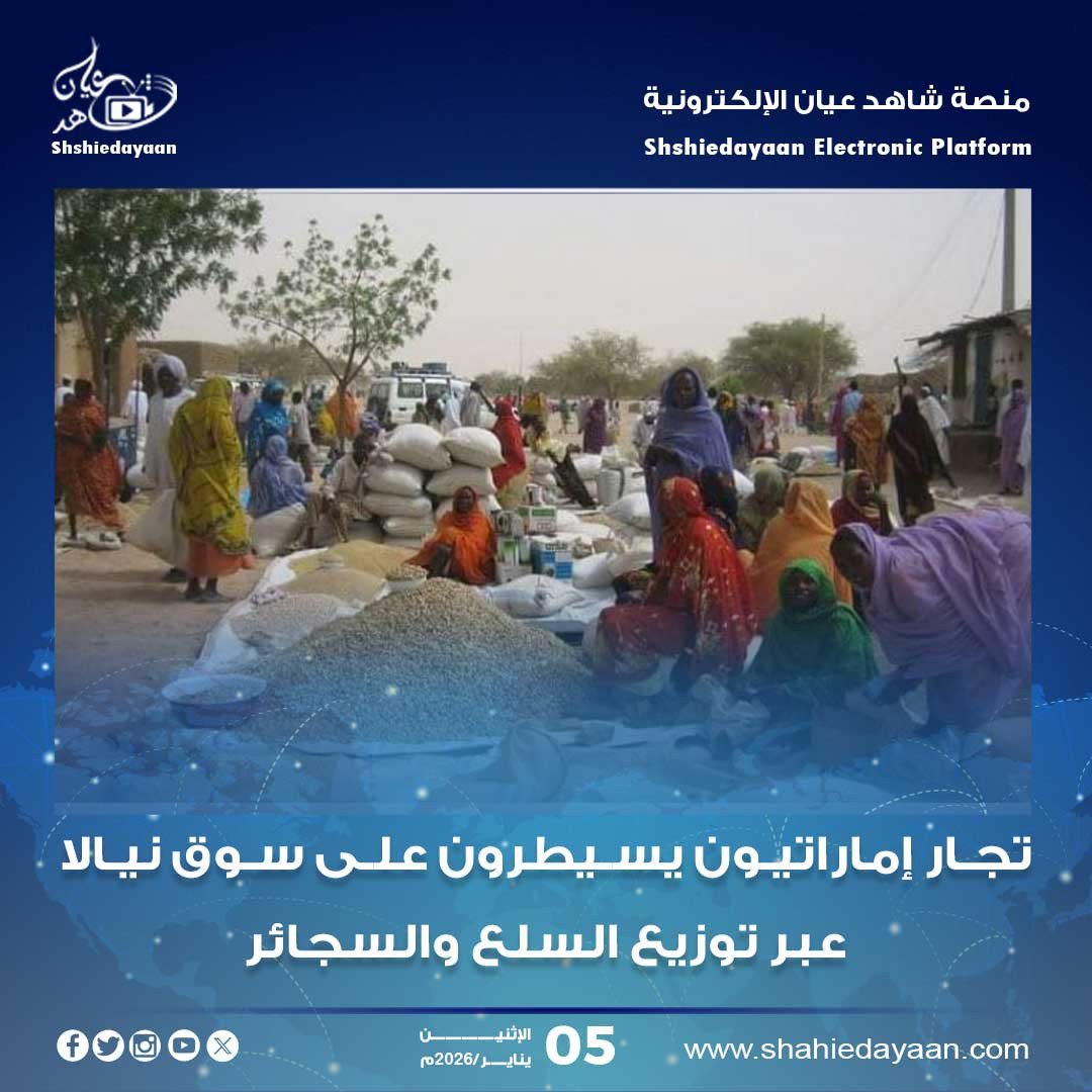 ثلاثة تجار إماراتيين يسيطرون على سوق نيالا بولاية جنوب دارفور، من خلال استيراد وتوزيع السلع الغذائية والسجائر المنتَجة في مصانع…