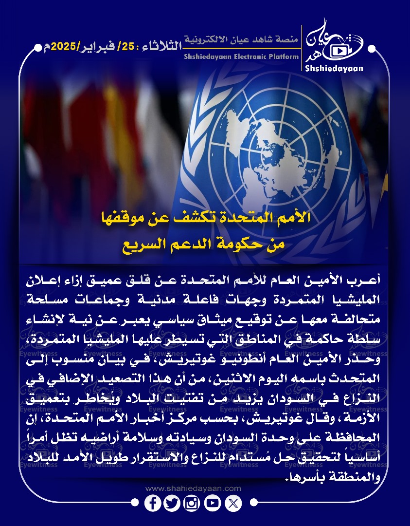 خبر في صورة الأمم المتحدة تكشف عن موقفها من حكومة الدعم السريع شاهد عيان فبراير 25, 2025 0 أقرأ المزيد ..