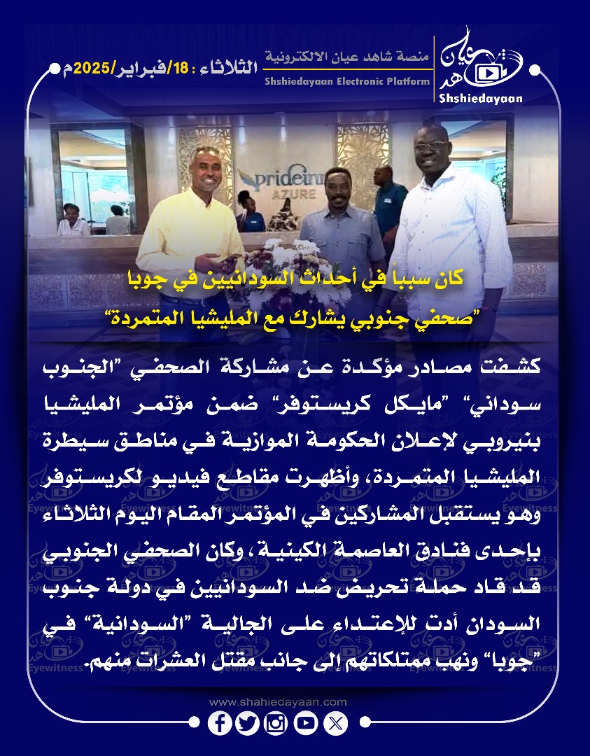 خبر في صورة كان سببا في أحداث السودانيين في جوبا صحفي جنوبي يشارك مع المليشيا المتمردة شاهد عيان فبراير 18, 2025 0 أقرأ المزيد ..