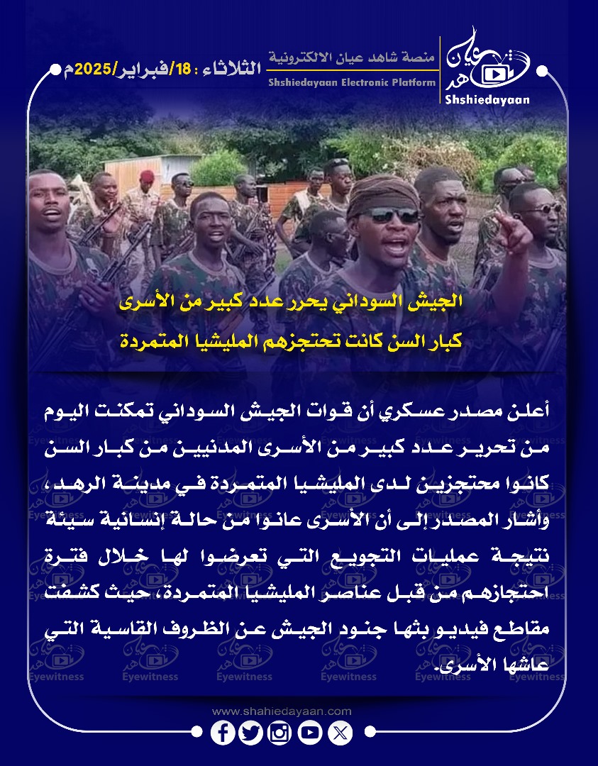 خبر في صورة الجيش السوداني يحرر عدد كبير من الأسرى كبار السن كانت تحتجزهم المليشيا المتمردة شاهد عيان فبراير 18, 2025 0 أقرأ المزيد ..