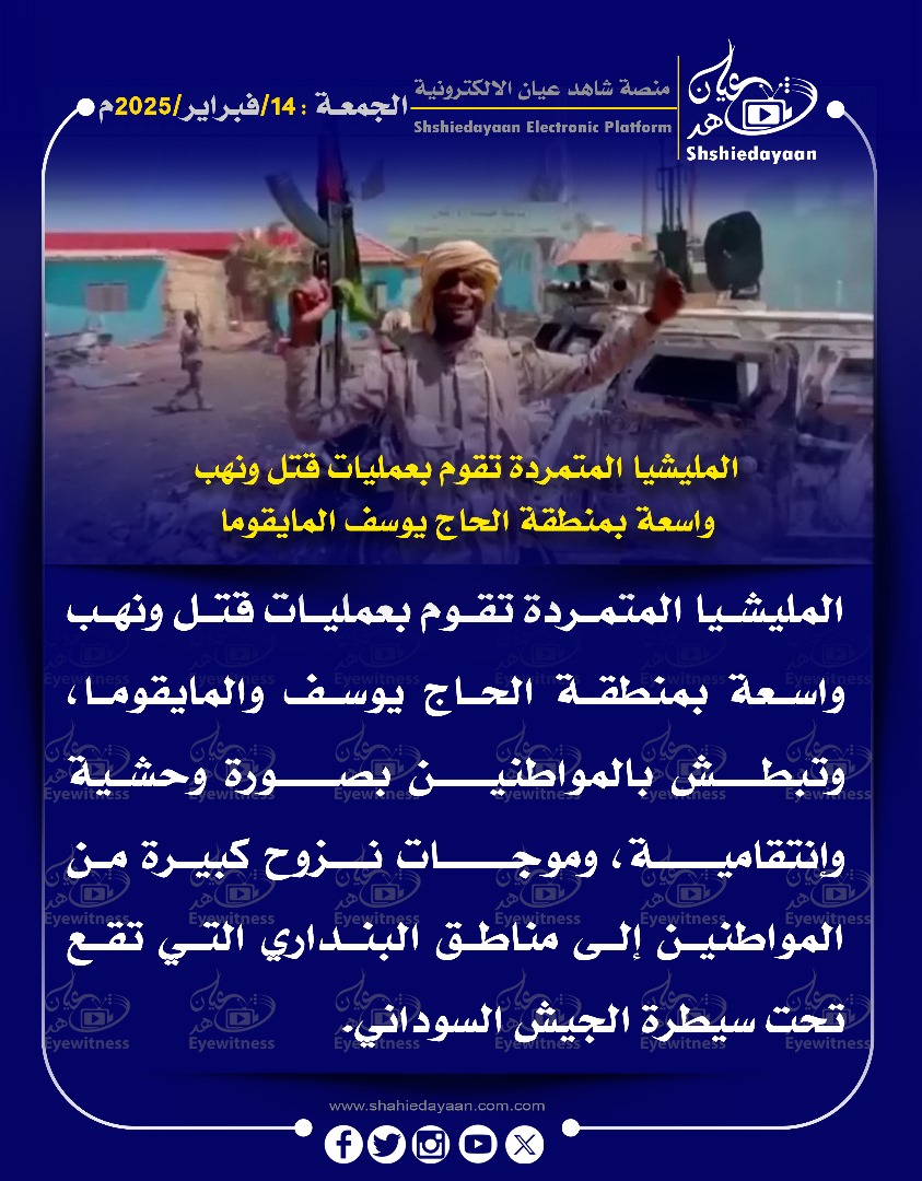 خبر في صورة الأخبار المليشيا المتمردة تقوم بعمليات قتل ونهب واسعة بمنطقة الحاج يوسف المايقوما شاهد عيان فبراير 14, 2025 0 أقرأ المزيد ..