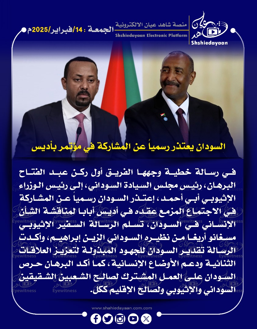 خبر في صورة الأخبار السودان يعتذر رسميا عن المشاركة في مؤتمر بأديس شاهد عيان فبراير 14, 2025 0 أقرأ المزيد ..