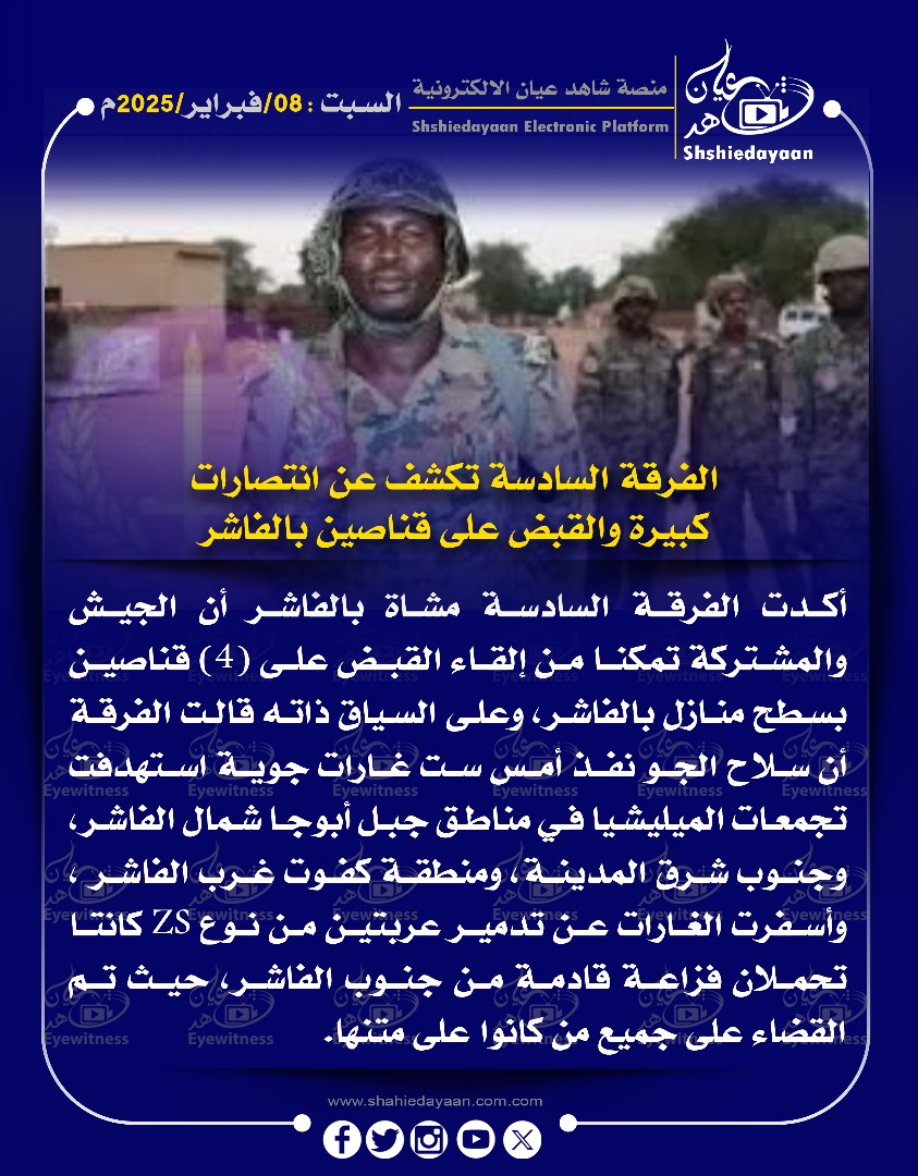 خبر في صورة الأخبار الفرقة السادسة تكشف عن انتصارات كبيرة والقبض على قناصين بالفاشر شاهد عيان فبراير 8, 2025 0 أقرأ المزيد ..