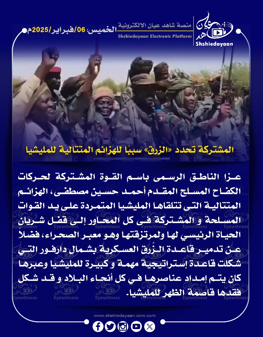خبر في صورة الأخبار المشتركة تحدد «الزرق» سببا للهزائم المتتالية للمليشيا شاهد عيان فبراير 6, 2025 0 أقرأ المزيد ..