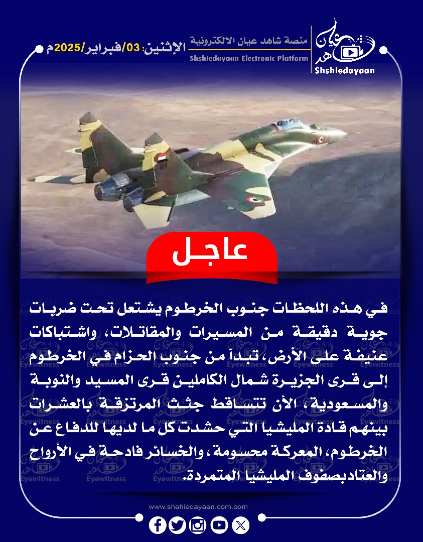 خبر في صورة الأخبار عاجل .. في هذه اللحظات يشتعل تحت ضربات جوية دقيقة من المسيرات والمقاتلات شاهد عيان فبراير 3, 2025 0 أقرأ المزيد ..