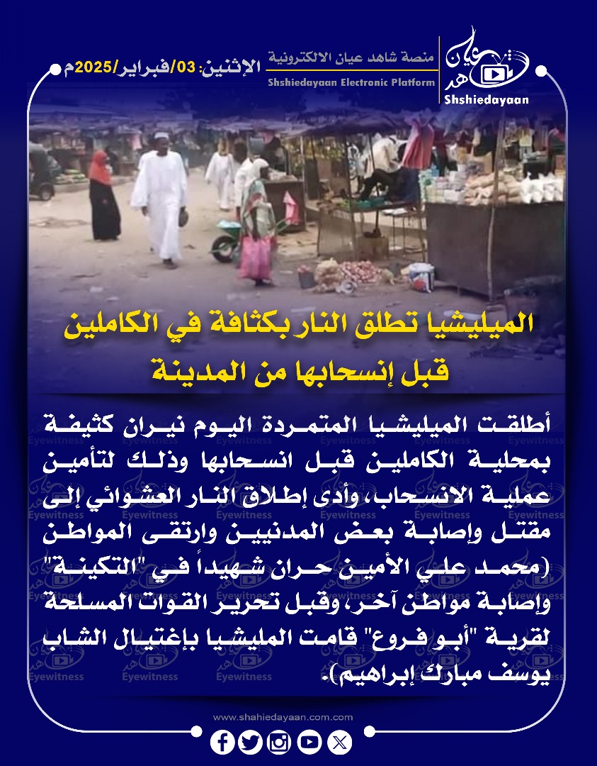 خبر في صورة الأخبار الميليشيا تطلق النار بكثافة في الكاملين قبل إنسحابها من المدينة شاهد عيان فبراير 3, 2025 0 أقرأ المزيد ..