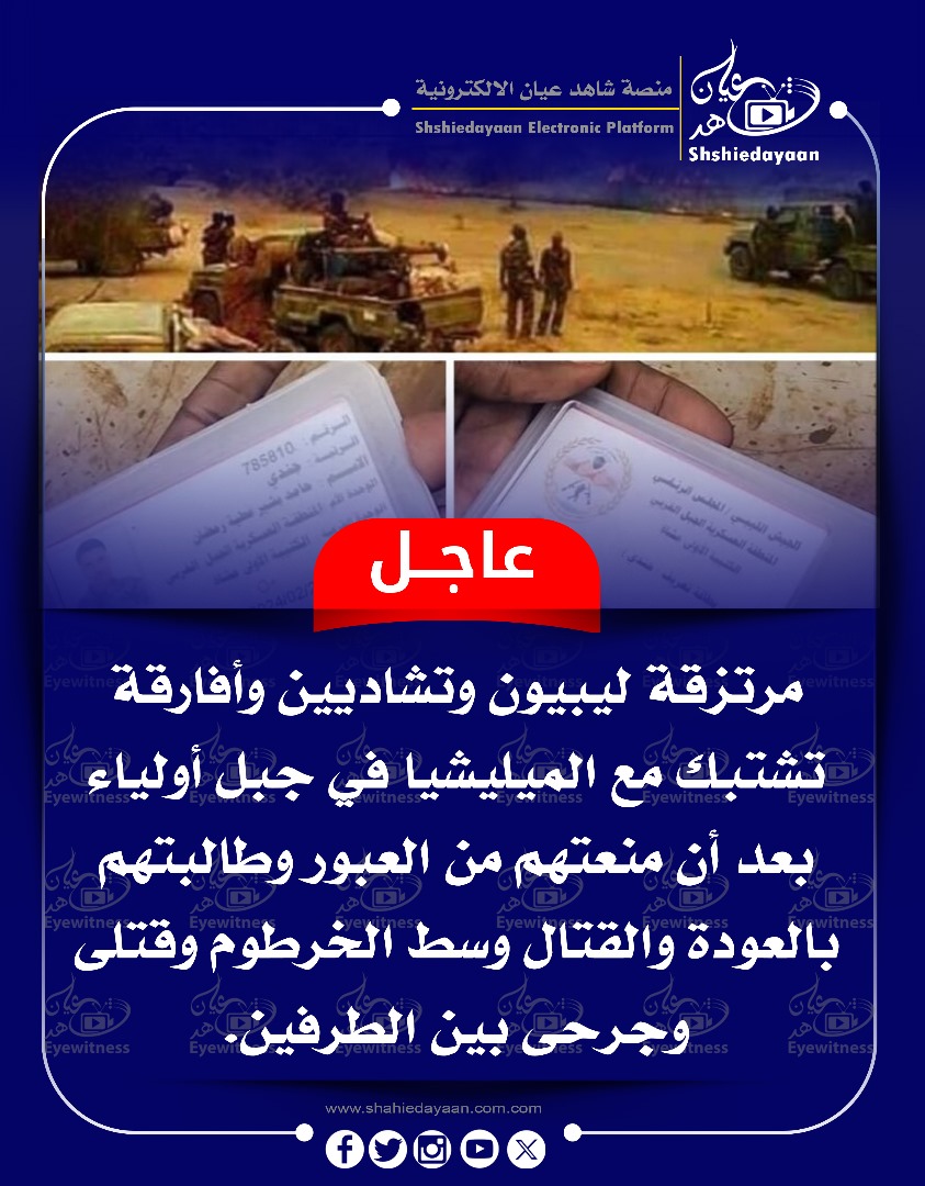 خبر في صورة الأخبار عاجل … مرتزقة ليبيون وتشاديين وأفارقة تشتبك مع الميليشيا في جبل أولياء شاهد عيان فبراير 3, 2025 0 أقرأ المزيد ..