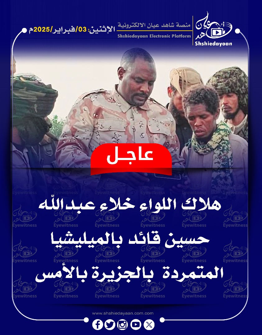 خبر في صورة الأخبار عاجل … المسيرية تطالب الماهرية تسليمهم المسؤولين عن تصفية “جلحه شاهد عيان فبراير 3, 2025 0 أقرأ المزيد ..