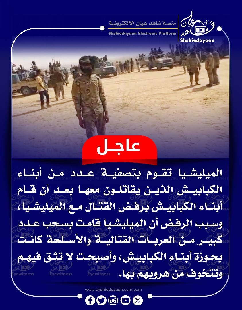 خبر في صورة الأخبار عاجل … الميليشيا تقوم بتصفية عدد من أبناء الكبابيش الذين يقاتلون معها بعد أن قام أبناء الكبابيش برفض القتال مع الميليشيا شاهد عيان فبراير 3, 2025 0 أقرأ المزيد ..