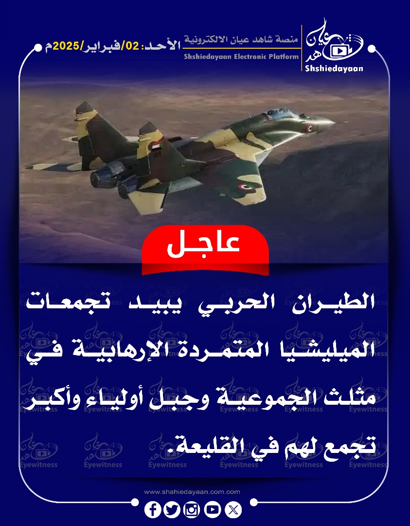 خبر في صورة الأخبار الطيران الحربي يبيد تجمعات الميليشيا المتمردة الإرهابية شاهد عيان فبراير 2, 2025 0 أقرأ المزيد ..
