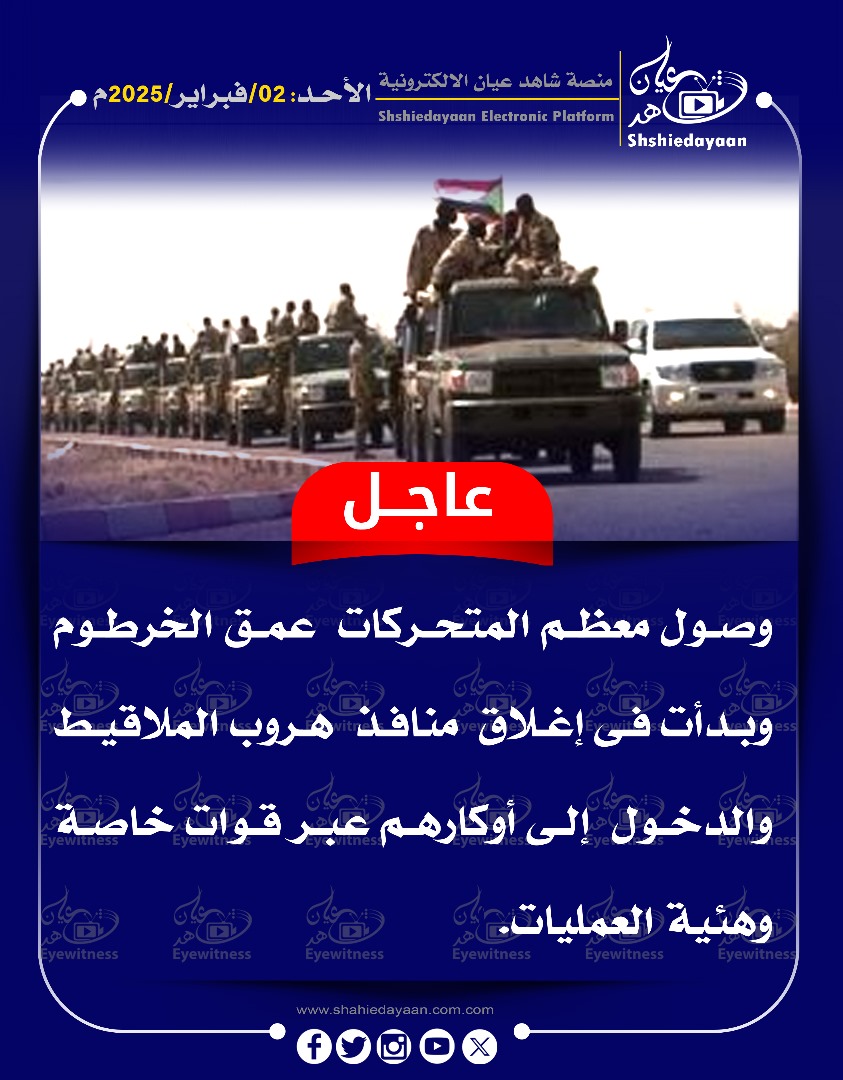 خبر في صورة الأخبار وصول معظم المتحركات عمق الخرطوم وبدأت في إغلاق منافذ هروب الملاقيط شاهد عيان فبراير 2, 2025 0 أقرأ المزيد ..