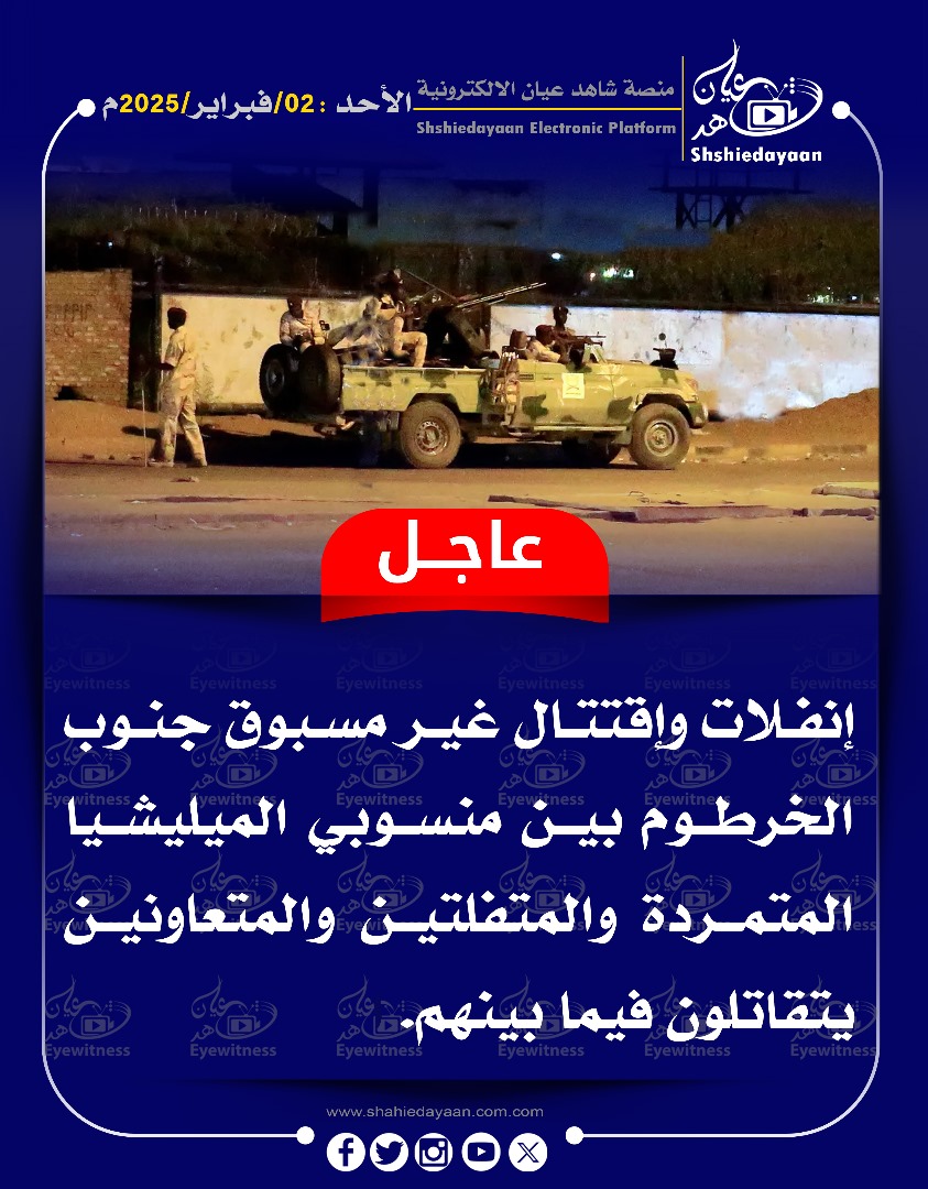 خبر في صورة الأخبار إنفلات واقتتال غير مسبوق جنوب الخرطوم بين منسوبي الميليشيا شاهد عيان فبراير 2, 2025 0 أقرأ المزيد ..