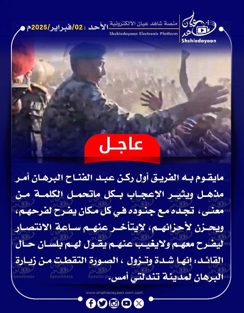 خبر في صورة الأخبار ما يقوم به الفريق أول ركن عبد الفتاح البرهان أمر مذهل ويثير الإعجاب بكل ما تحمل الكلمة من معنى، تجده مع جنوده في كل مكان يفرح لفرحهم شاهد عيان فبراير 2, 2025 0 أقرأ المزيد ..
