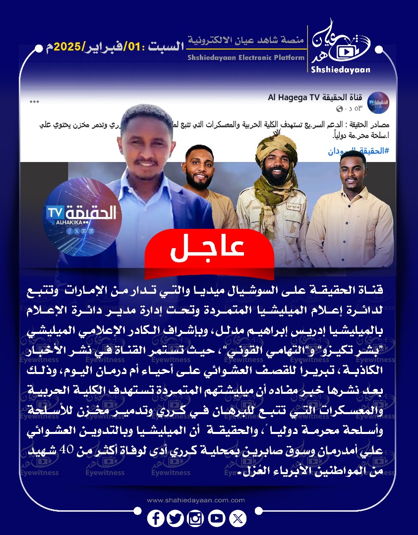 خبر في صورة الأخبار عاجل … قناة الحقيقة على السوشيال ميديا والتي تدار من الإمارات وتتبع لدائرة إعلام الميليشيا المتمردة وتحت إدارة مدير دائرة الإعلام بالميليشيا إدريس إبراهيم مدلل شاهد عيان فبراير 1, 2025 0 أقرأ المزيد ..