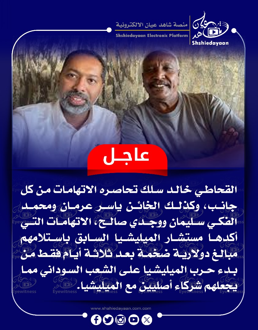 خبر في صورة الأخبار القحاطي خالد سلك تحاصره الاتهامات من كل جانب،وكذلك الخائن ياسر عرمان ومحمد الفكي سليمان ووجدي صالح شاهد عيان فبراير 2, 2025 0 أقرأ المزيد ..