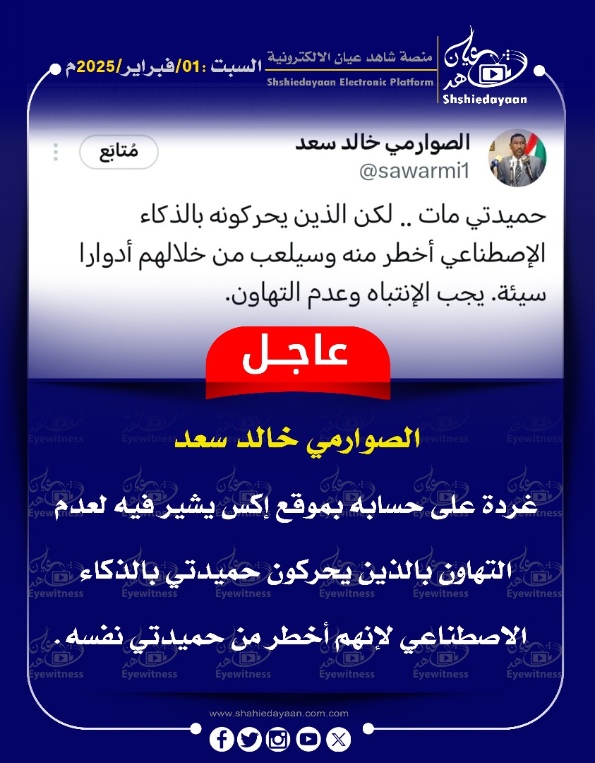 خبر في صورة الأخبار عاجل … الصوارمي خالد سعد غردة على حسابه بموقع إكس شاهد عيان فبراير 1, 2025 0 أقرأ المزيد ..