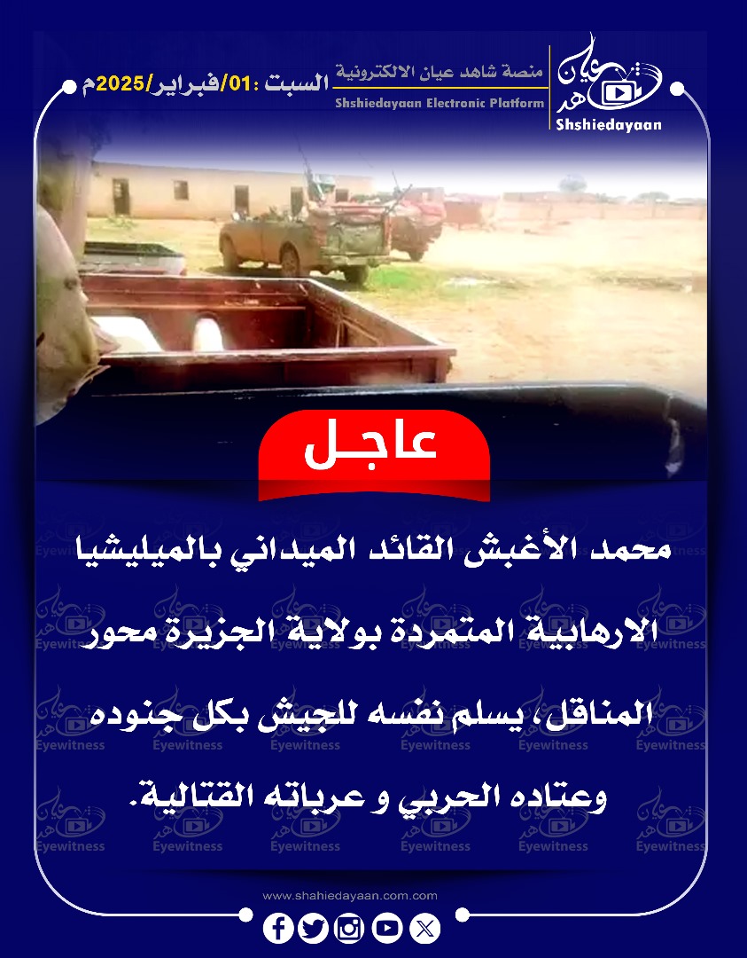خبر في صورة الأخبار عاجل …. محمد الأغبش القائد الميداني بالميليشيا الارهابية المتمردة بولاية الجزيرة شاهد عيان فبراير 1, 2025 0 أقرأ المزيد ..