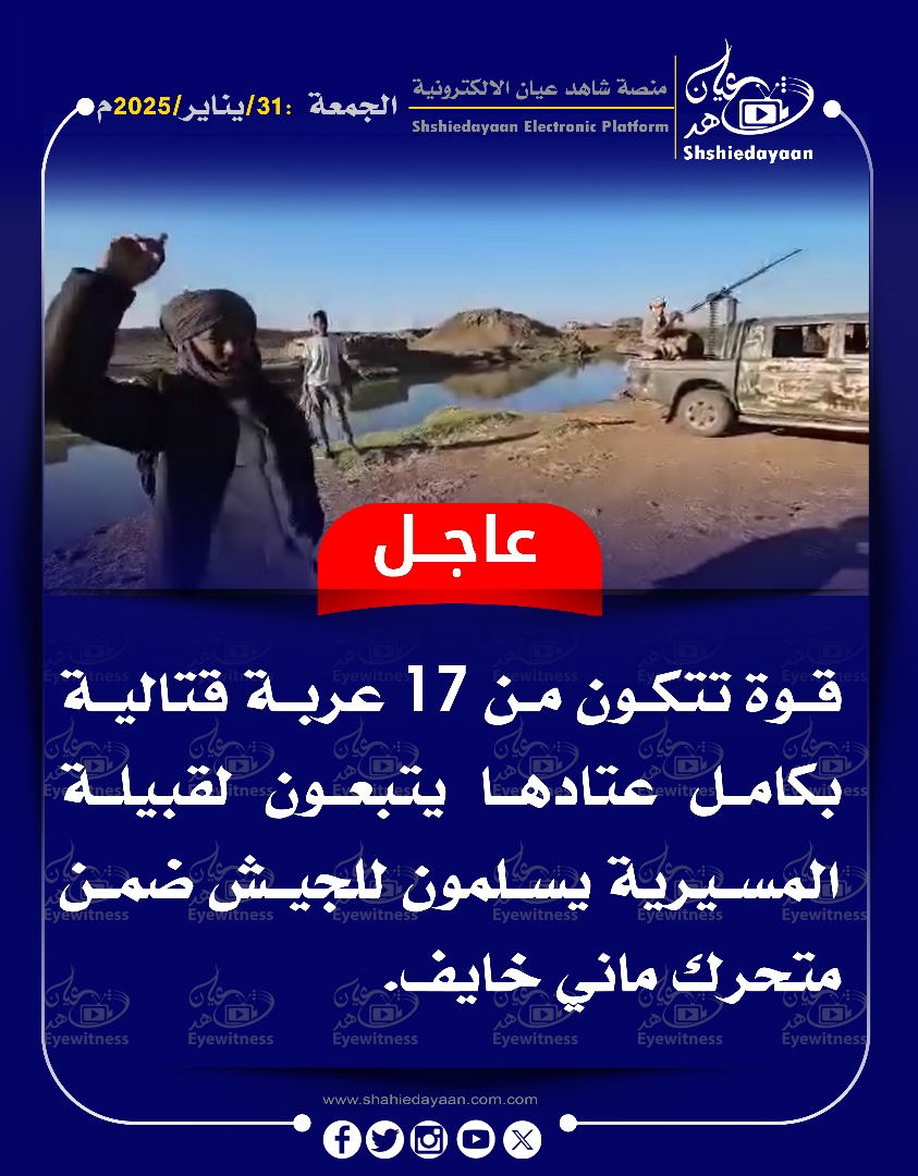 خبر في صورة الأخبار قوة تتكون من 17 عربة قتالية بكامل عتادها يتبعون لقبيلة المسيرية شاهد عيان يناير 31, 2025 0 أقرأ المزيد ..