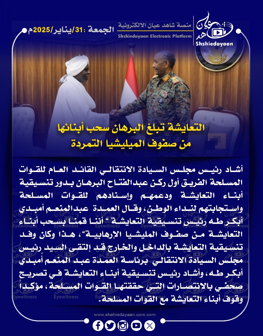 خبر في صورة الأخبار التعايشة تبلغ البرهان سحب أبنائها من صفوف الميليشيا التمردة شاهد عيان يناير 31, 2025 0 أقرأ المزيد ..