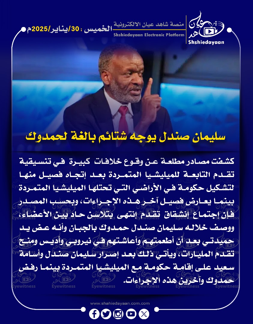 الأخبار النور القبة ينفي صلة قواته بمقاطع نيالا ويؤكد فرض انضباط صارم بعد الانضمام للجيش شاهد عيان أبريل 27, 2026