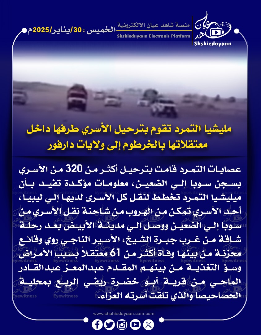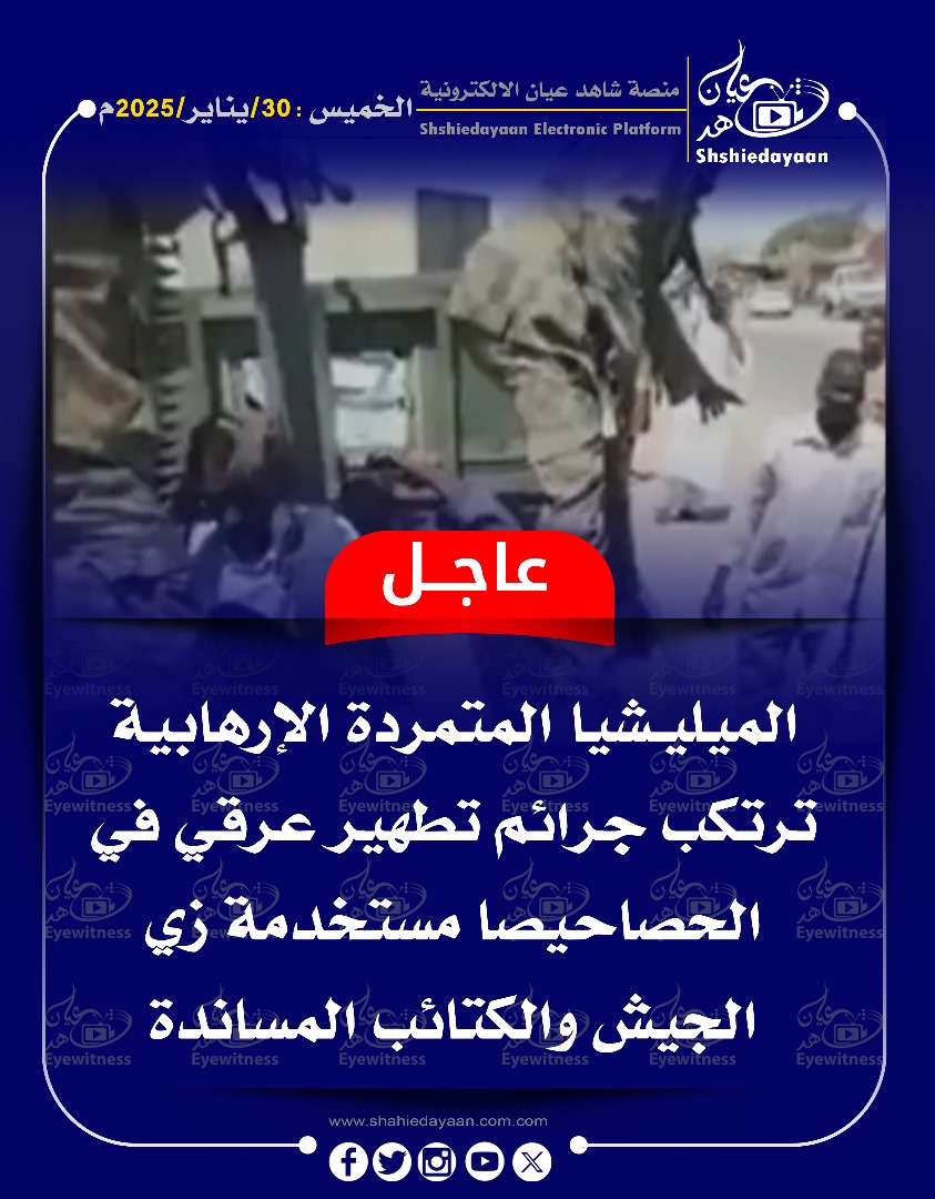 خبر في صورة الأخبار الميليشيا المتمردة الإرهابية ترتكب جرائم تطهير عرقي في الحصاحيصا شاهد عيان يناير 30, 2025 0 أقرأ المزيد ..