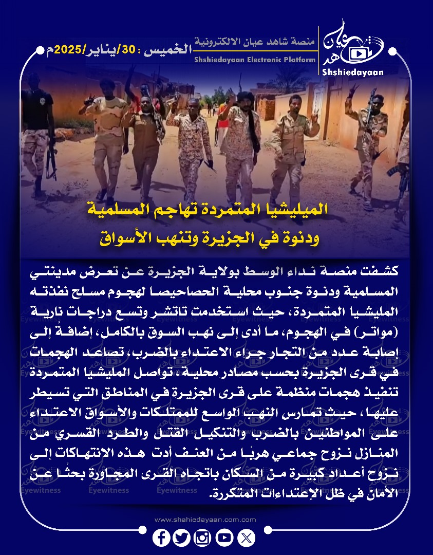 خبر في صورة الأخبار الميليشيا المتمردة تهاجم المسلمية ودنوة في الجزيرة وتنهب الأسواق شاهد عيان يناير 30, 2025 0 أقرأ المزيد ..