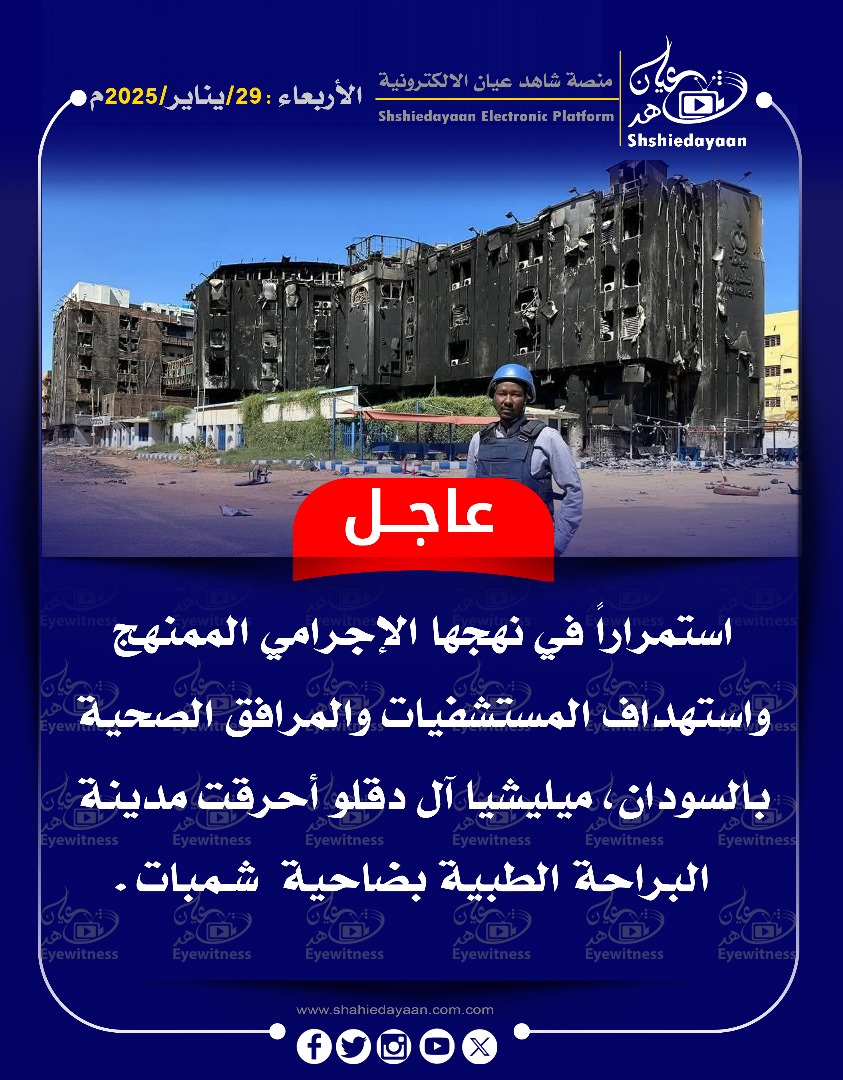 خبر في صورة الأخبار عاجل … استمراراً في نهجها الإجرامي الممنهج واستهداف المستشفيات والمرافق الصحية . بالسودان، شاهد عيان يناير 29, 2025 0 أقرأ المزيد ..