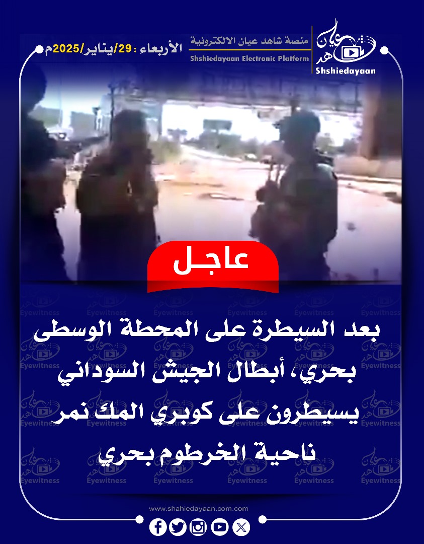 خبر في صورة الأخبار عاجل … الجيش السوداني يسيطر على المحطة الوسطى بحري ويطرد ميليشيا آل دقلو الإرهابية المتمردة، شاهد عيان يناير 29, 2025 0 أقرأ المزيد ..