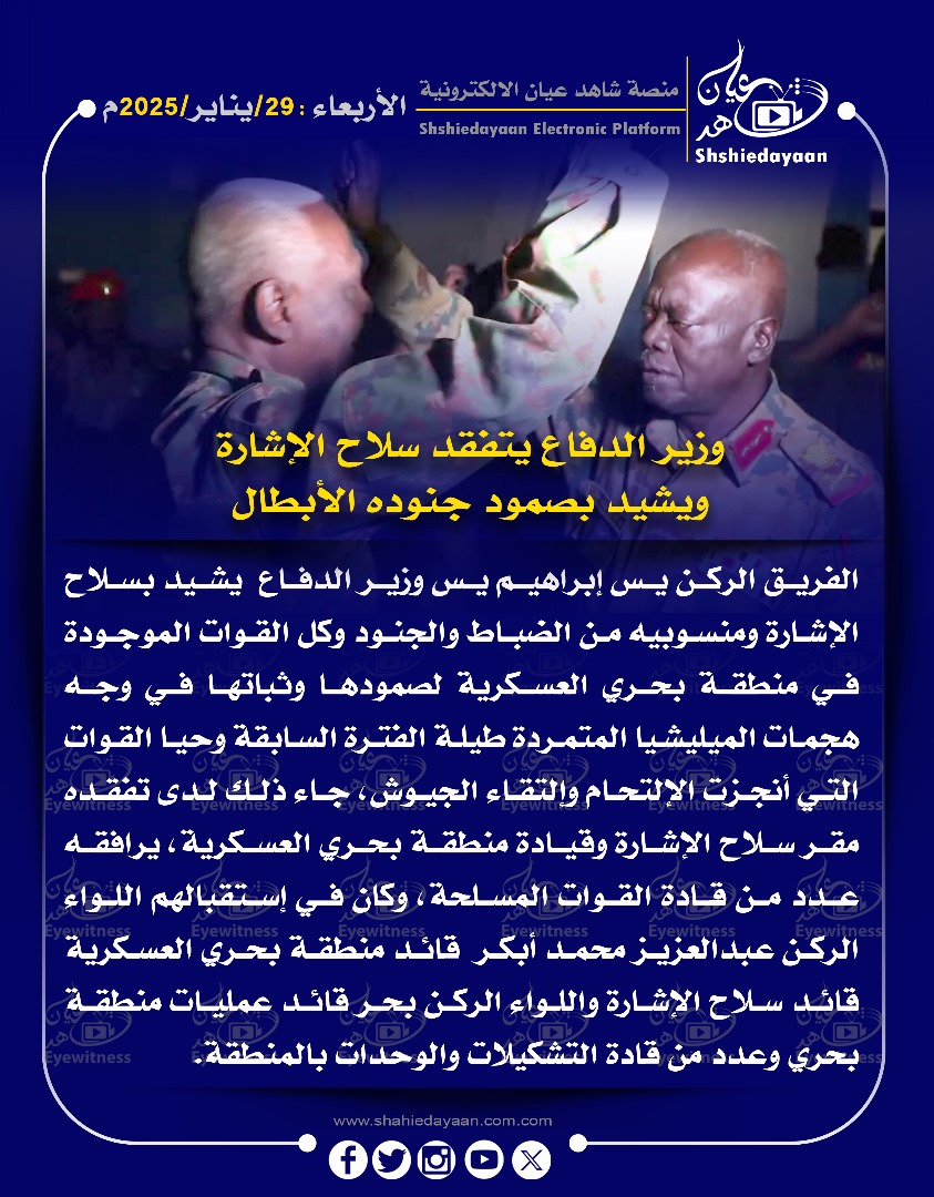 خبر في صورة الأخبار وزير الدفاع يتفقد سلاح الإشارة ويشيد بصمود جنوده الأبطال شاهد عيان يناير 29, 2025 0 أقرأ المزيد ..