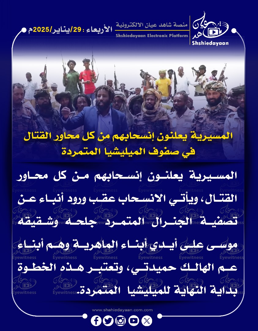 خبر في صورة الأخبار المسيرية يعلنون إنسحابهم من كل محاور القتال في صفوف الميليشيا المتمردة شاهد عيان يناير 29, 2025 0 أقرأ المزيد ..
