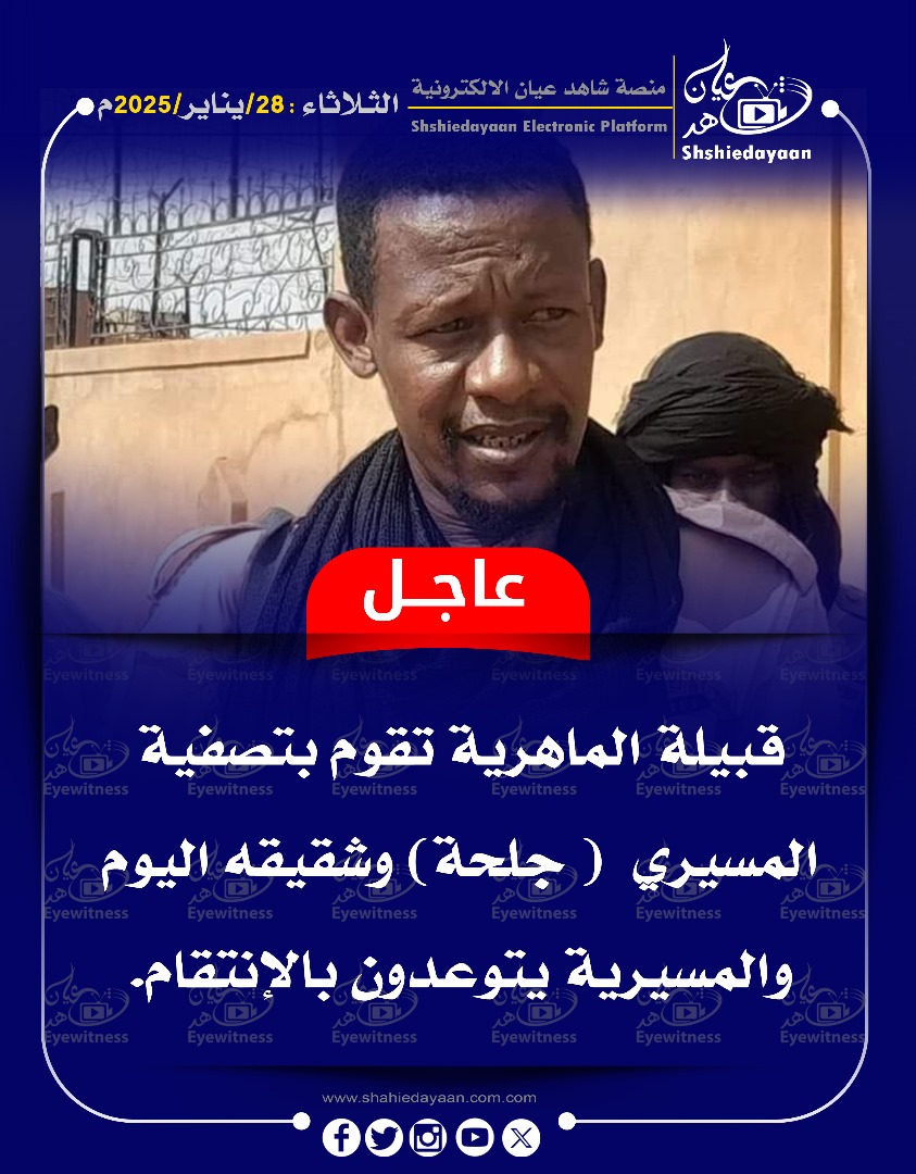 خبر في صورة الأخبار عاجل …. قبيلة الماهرية تقوم بتصفية المسيري ( جلحة ) وشقيقه اليوم والمسيرية يتوعدون بالإنتقام شاهد عيان يناير 28, 2025 0 أقرأ المزيد ..