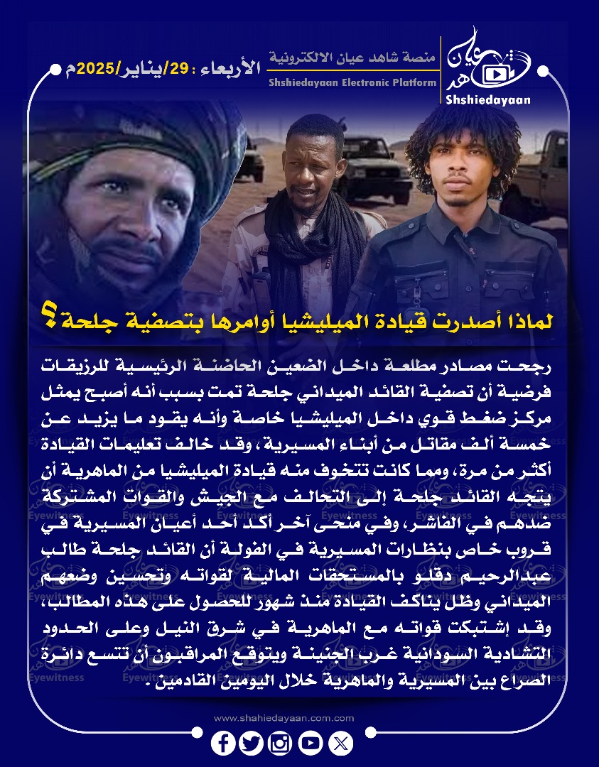 الأخبار قوة الماهرية الخاصة تراقب قادة المليشيا وسط مخاوف من انهيار داخلي وتسليم محتمل للجيش شاهد عيان أبريل 27, 2026