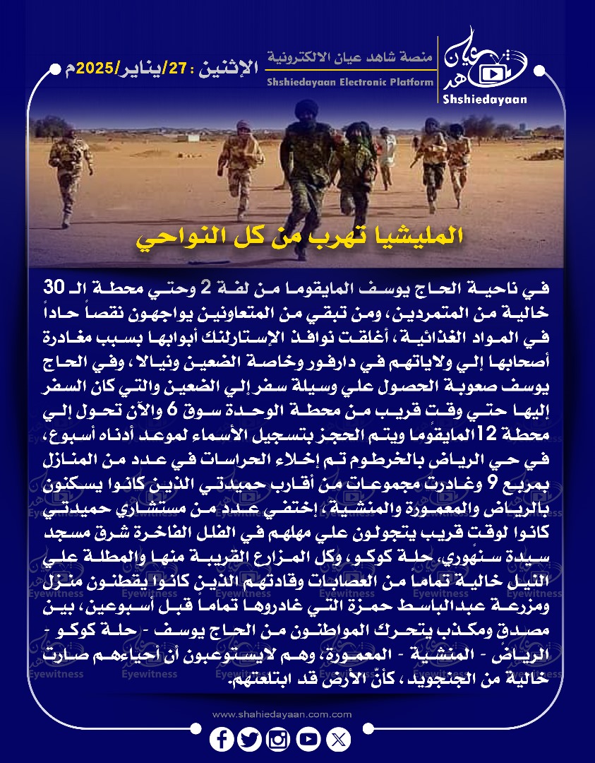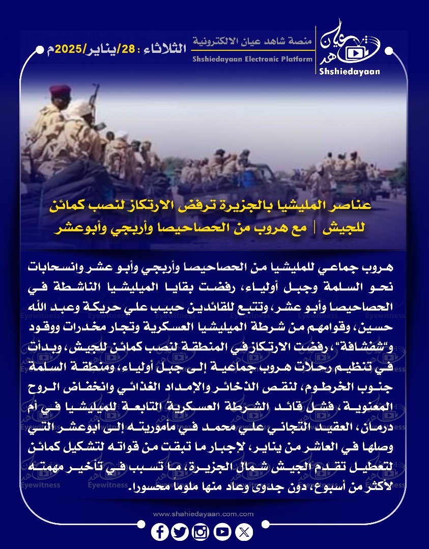 خبر في صورة الأخبار عناصر المليشيا بالجزيرة ترفض الارتكاز النصب كمائن للجيش | مع هروب من الحصاحيصا وأربجي وأبو عشر شاهد عيان يناير 28, 2025 0 أقرأ المزيد ..