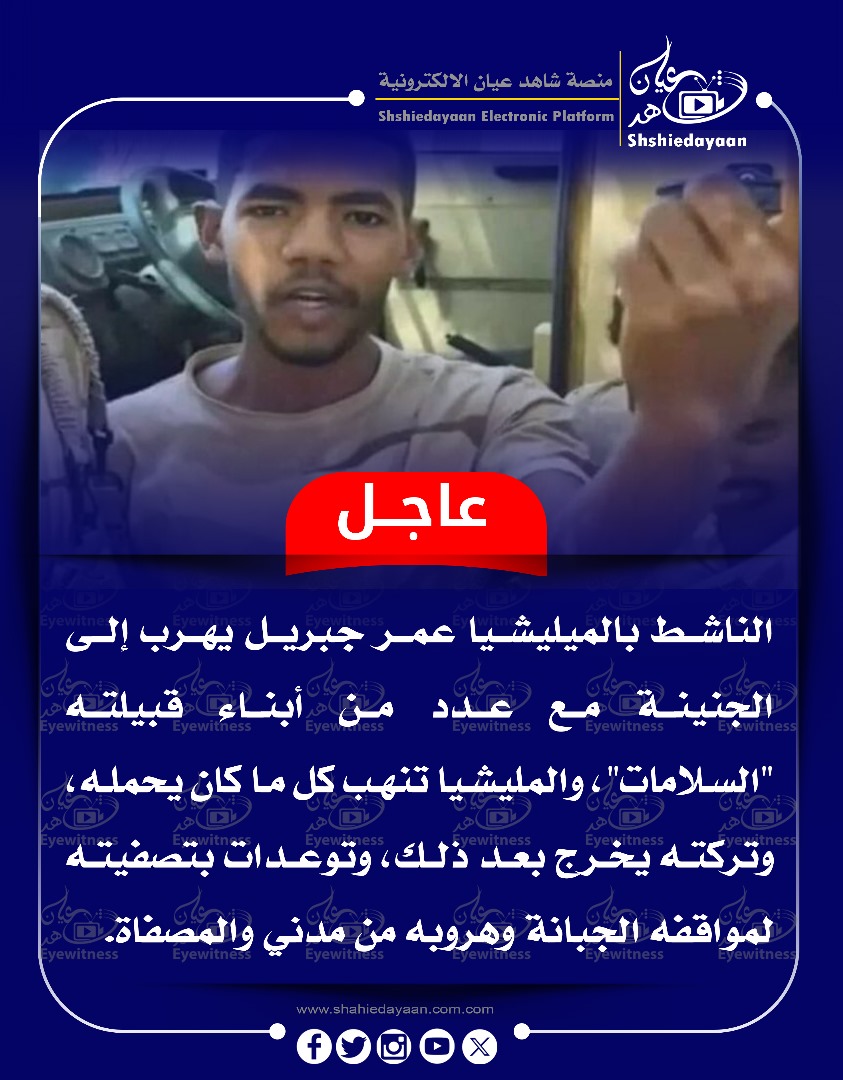 الأخبار خبر في صورة عاجل …. الناشط بالميليشيا عمر جبريل يهرب إلى الجنينة شاهد عيان يناير 27, 2025 0 أقرأ المزيد ..