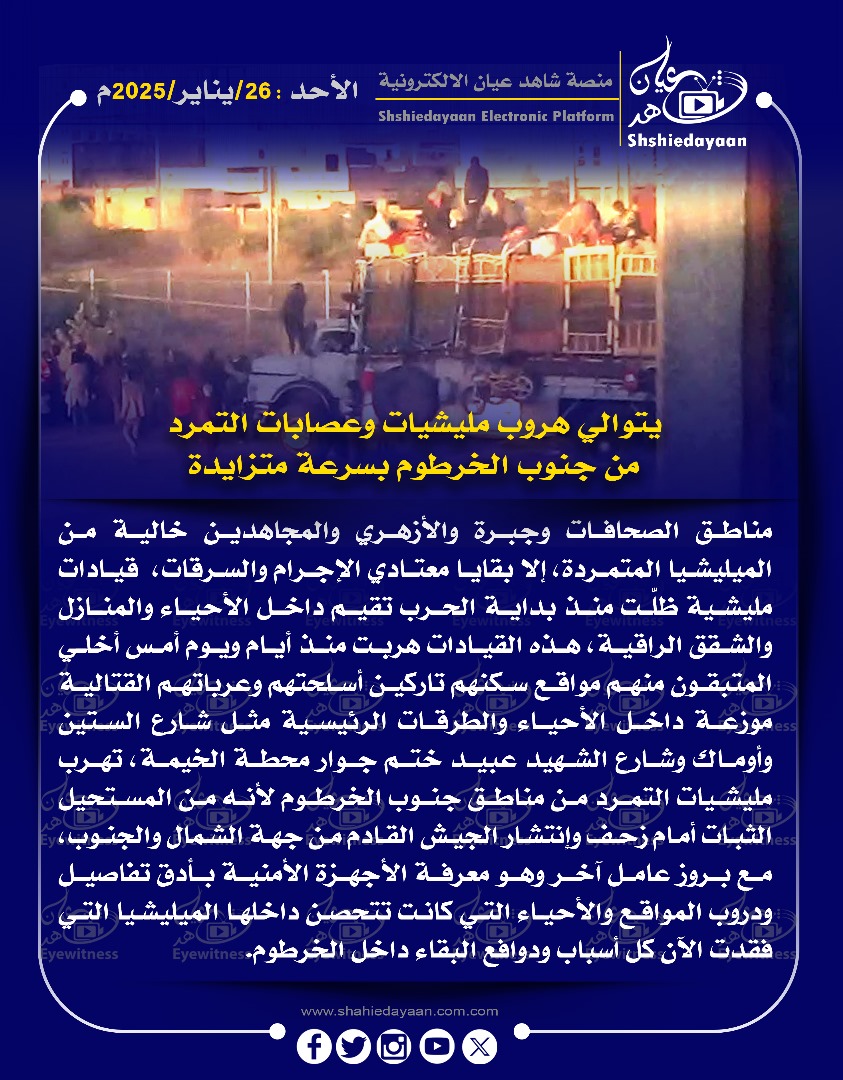 خبر في صورة الأخبار يتوالي هروب مليشيات وعصابات التمرد من جنوب الخرطوم بسرعة متزايدة شاهد عيان يناير 26, 2025 0 أقرأ المزيد ..