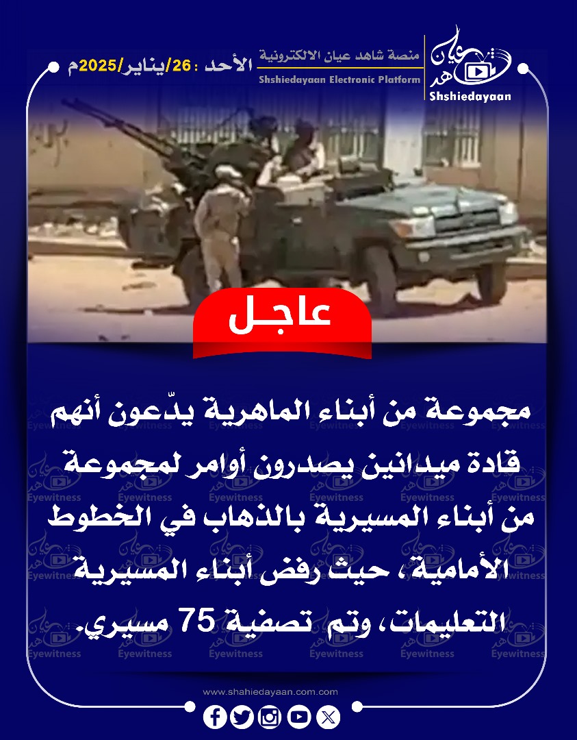 خبر في صورة الأخبار عاجل…مجموعة من أبناء الماهرية يدعون أنهم قادة ميدانين يصدرون أوامر لمجموعة شاهد عيان يناير 26, 2025 0 أقرأ المزيد ..