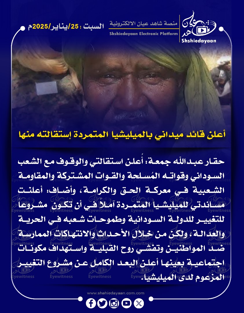 خبر في صورة الأخبار أعلن قائد ميداني بالميليشيا المتمردة إستقالته منها شاهد عيان يناير 25, 2025 0 أقرأ المزيد ..
