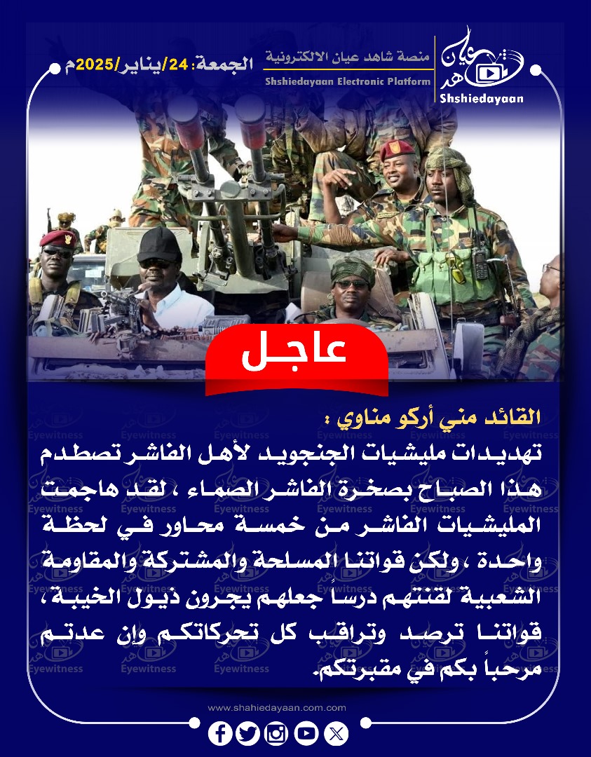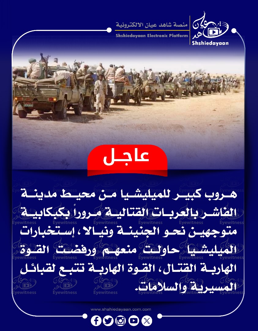 خبر في صورة الأخبار عاجل … هروب كبير للميليشيا من محيط مدينة الفاشر بالعربات القتالية مروراً بكبكابية . متوجهين نحو الجنينة ونيالا ، شاهد عيان يناير 25, 2025 0 أقرأ المزيد ..