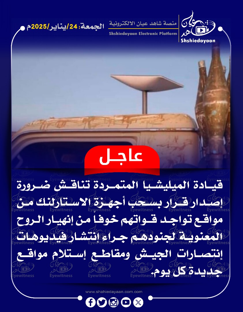 خبر في صورة الأخبار عاجل …قيادة الميليشيا المتمردة تناقش ضرورة إصدار قرار بسحب أجهزة الاستارلنك من معين مواقع تواجد قواتهم خوفا من إنهيار الروح المعنوية لجنودهم شاهد عيان يناير 24, 2025 0 أقرأ المزيد ..