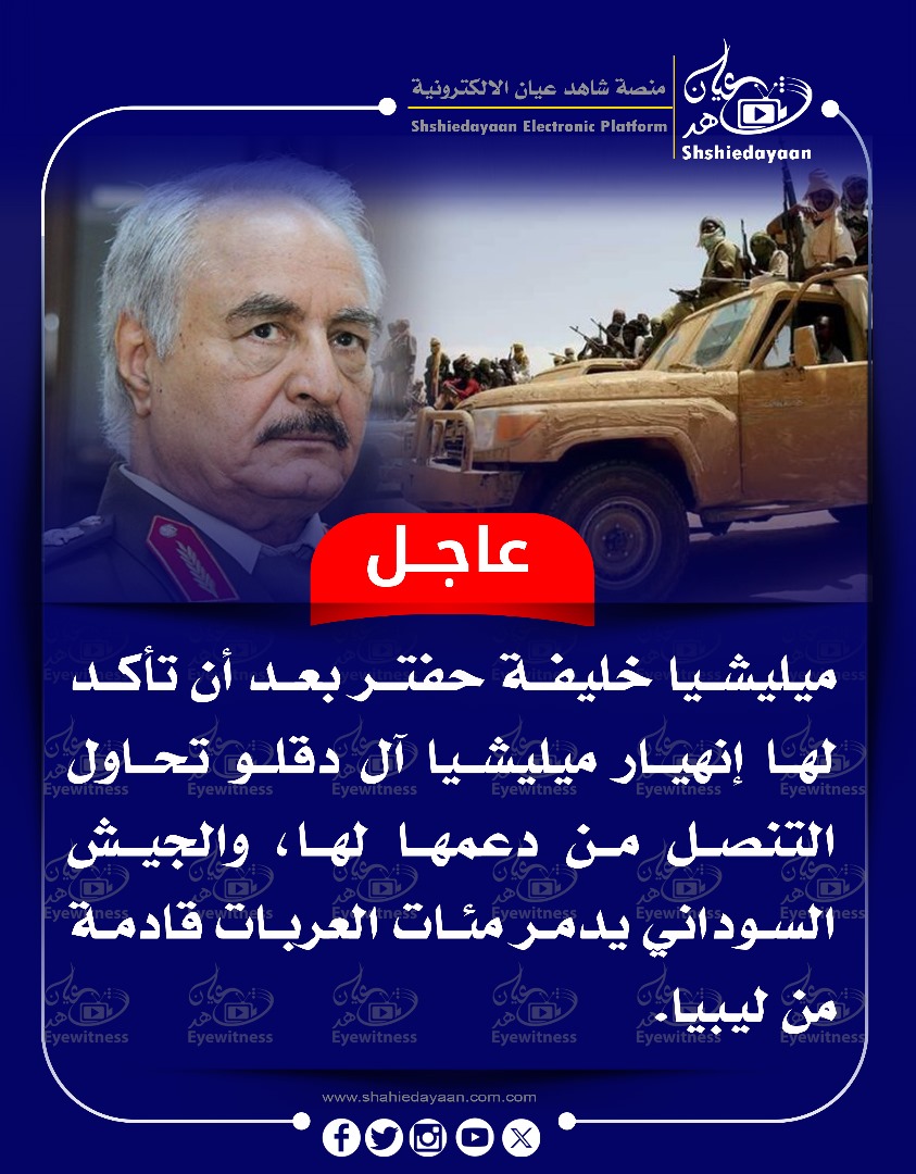 خبر في صورة الأخبار عاجل …. ميليشيا خليفة حفتر بعد أن تأكد لها إنهيار ميليشيا آل دقلو تحاول التنصل من دعمها لها شاهد عيان يناير 24, 2025 0 أقرأ المزيد ..