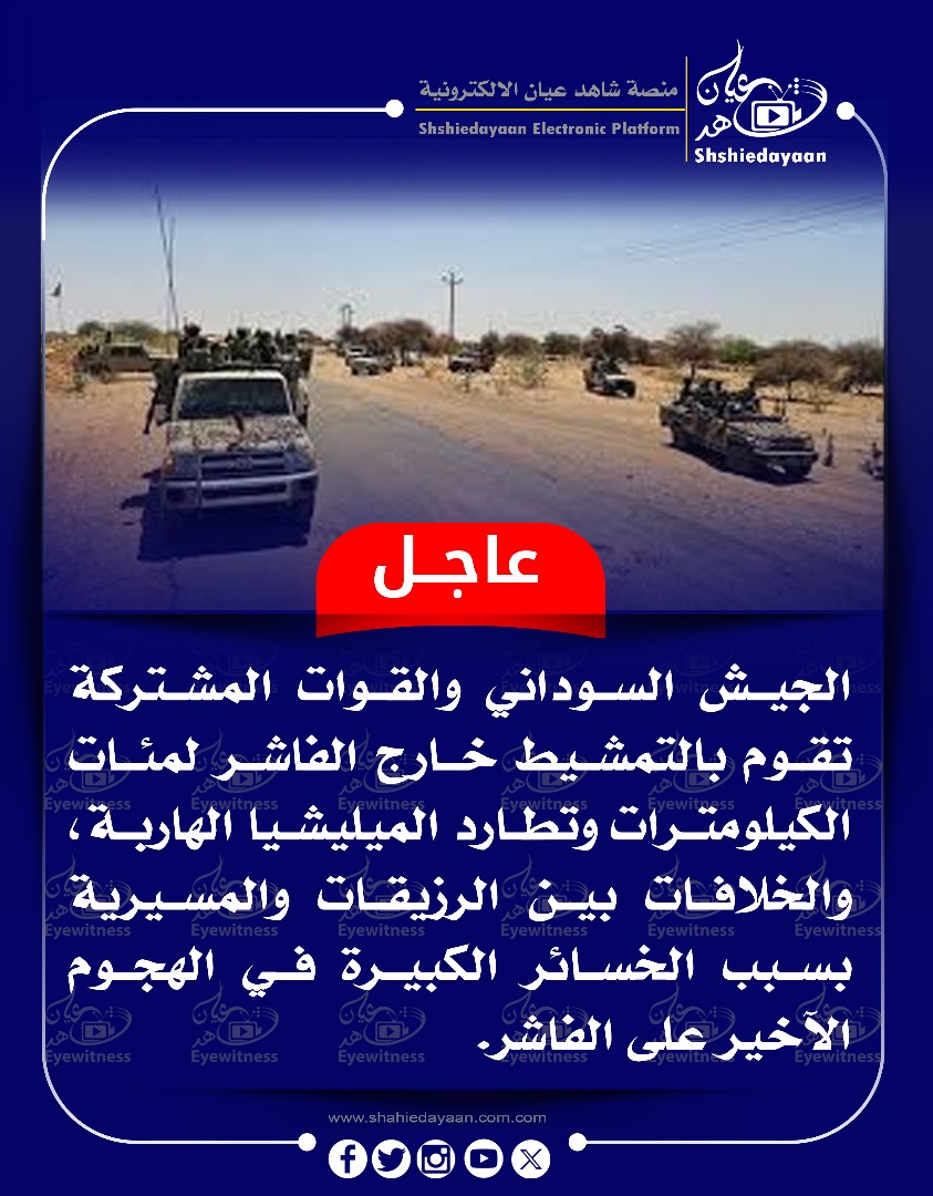 خبر في صورة الأخبار عاجل … الجيش السوداني والقوات المشتركة تقوم بالتمشيط خارج الفاشر لمئات الكيلومترات وتطارد الميليشيا الهاربة شاهد عيان يناير 24, 2025 0 أقرأ المزيد ..