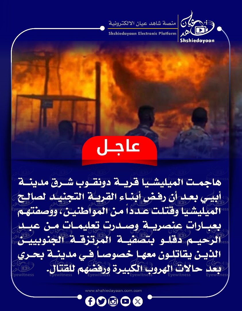 خبر في صورة الأخبار هاجمت الميليشيا قرية دونقوب شرق مدينة أبيي بعد أن رفض أبناء القرية التجنيد لصالح الميليشيا شاهد عيان يناير 23, 2025 0 أقرأ المزيد ..