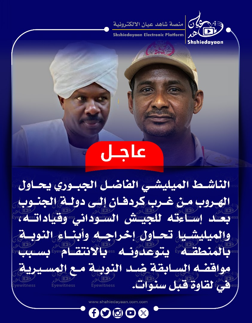 خبر في صورة الأخبار الناشط الميليشي الفاضل الجبوري يحاول الهروب من غرب كردفان إلى دولة الجنوب شاهد عيان يناير 23, 2025 0 أقرأ المزيد ..