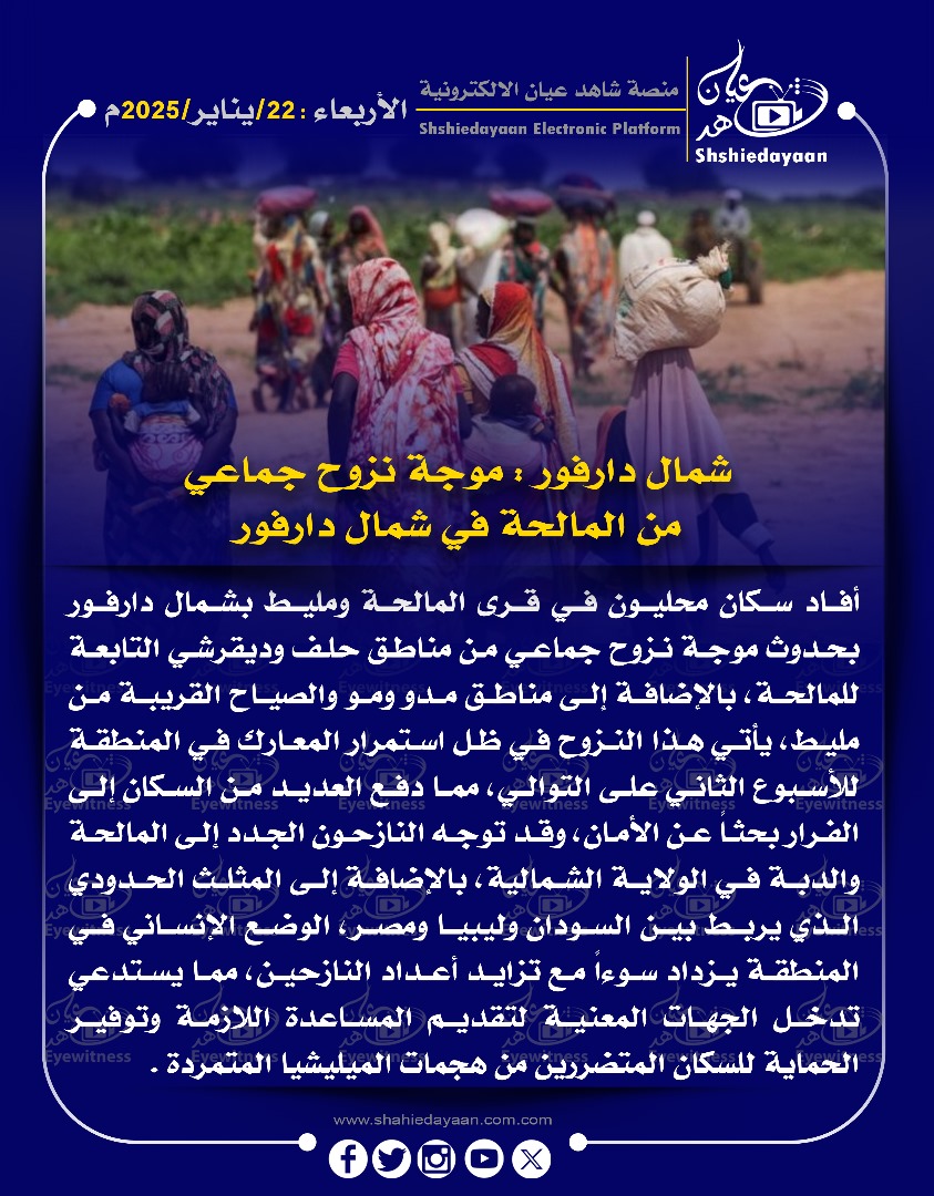 خبر في صورة الأخبار شمال دارفور : موجة نزوح جماعي من المالحة في شمال دارفور شاهد عيان يناير 22, 2025 0 أقرأ المزيد ..
