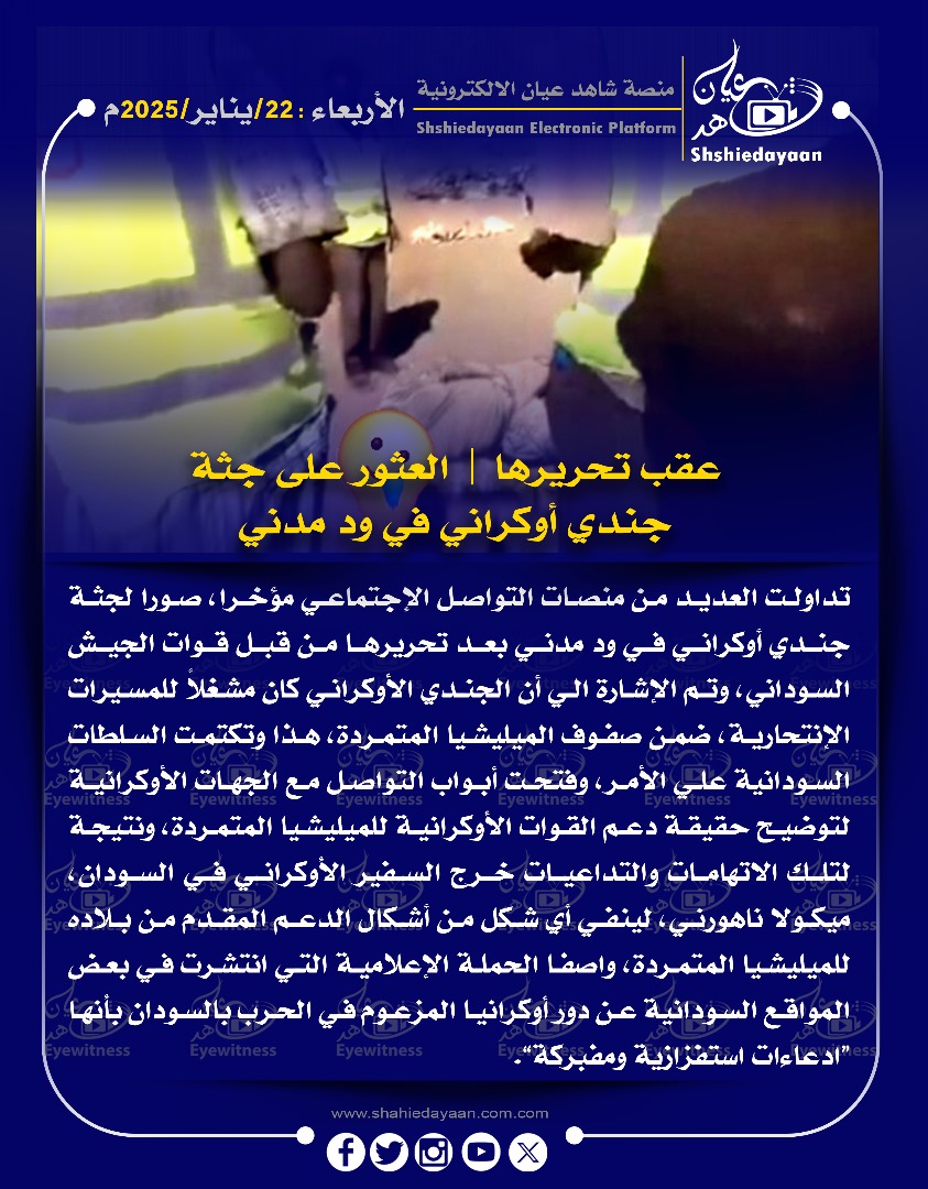 خبر في صورة الأخبار عقب تحريرها | العثور على جثة جندي أوكراني في ود مدني شاهد عيان يناير 22, 2025 0 أقرأ المزيد ..
