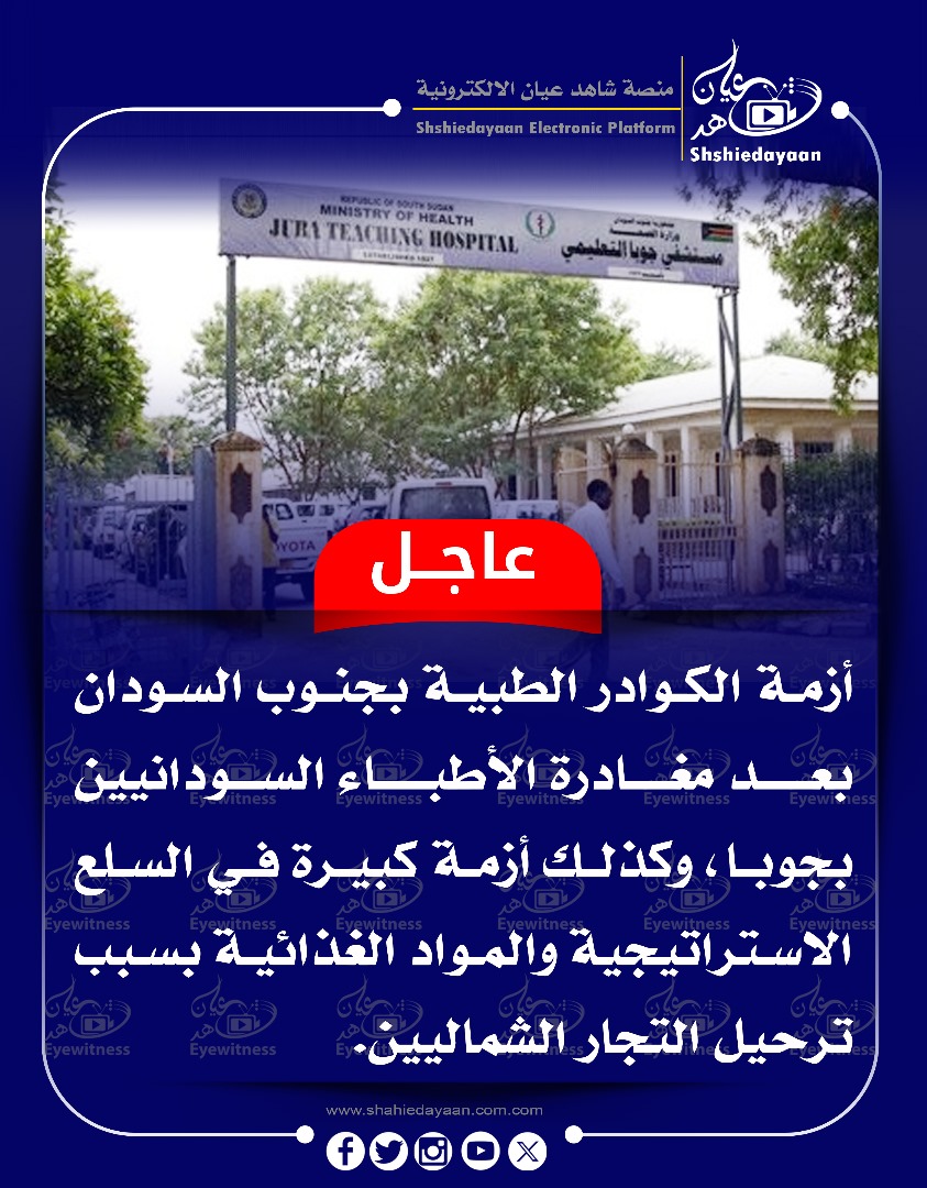 خبر في صورة الأخبار عاجل … أزمة الكوادر الطبية بجنوب السودان بعد مغادرة الأطباء السودانيين شاهد عيان يناير 21, 2025 0 أقرأ المزيد ..