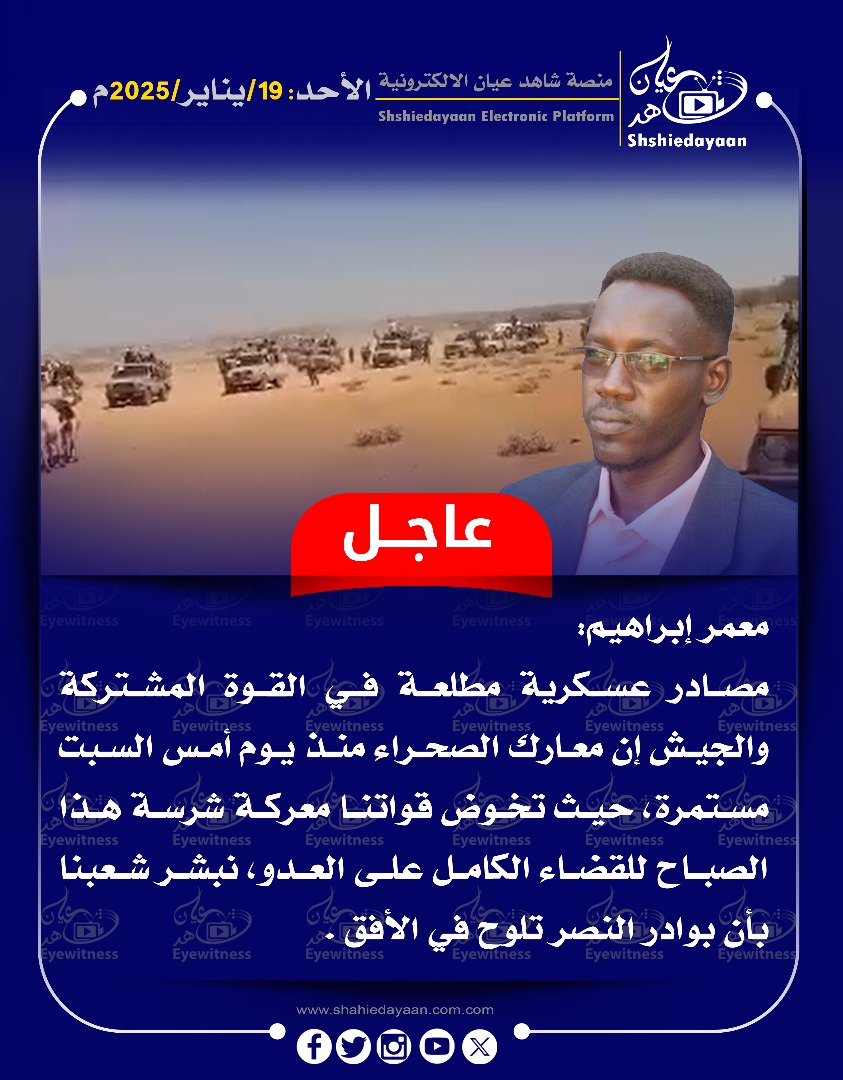 خبر في صورة الأخبار مصادر عسكرية مطلعة في القوة المشتركة والجيش إن معارك الصحراء منذ يوم أمس السبت مستمرة شاهد عيان يناير 19, 2025 0 أقرأ المزيد ..